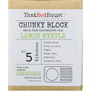 An all-natural replacement for conventional dishwashing detergents, laundry soaps, hand soaps and general household cleaners, the Chunky Block from That Red House comes in either fresh Grapefruit or Lemon Myrtle scents. Made from organic soap berries and essential oils.