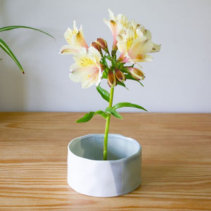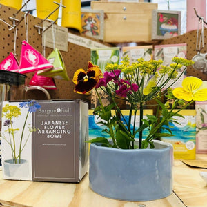 Designed for use in Ikebana - the graceful craft of Japanese flower arrangement - this beautiful bowl and metal spike allow you to create simple, elegant arrangements with home-grown or bought flowers. The ceramic bowl features a diagonal dip glaze in neutral shades of blue-grey, while the metal spike (or "frog") holds blooms securely in position without the need for conventional plastic florists' foam.