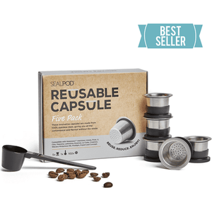 This five pack of refillable coffee capsules is for coffee lovers with a conscience. They can be reused over a lifetime.