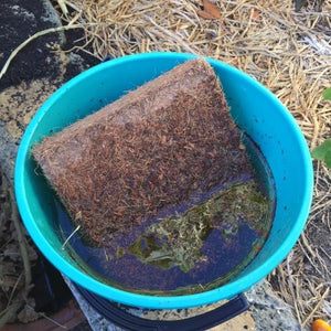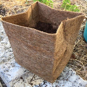 These square coir fibre planter bags come with a coir block that can be rehydrated and then mixed with some composted potting soil to fill the pot.