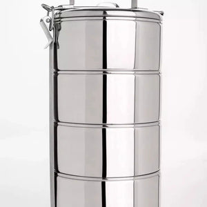 This Tiffin Box is a Stackable Lunch Box offering 4 large stainless-steel containers in a “stack n lock” carrier.