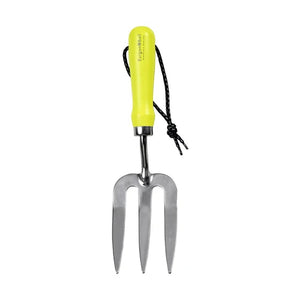 Thehardened and tempered stainless steel prongs can withstand tough cultivating and rust resistance. The tang (neck) is precision forged to the optimal angle for ergonomic working. The timber handle is lightweight, with it's yellow design making it near impossible to loose.