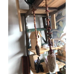 Jim sources his materials from local gardens and hand finishes them to create delightful and practical household items, including these garlands, pot holders and key rings.