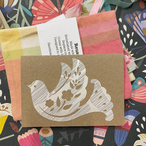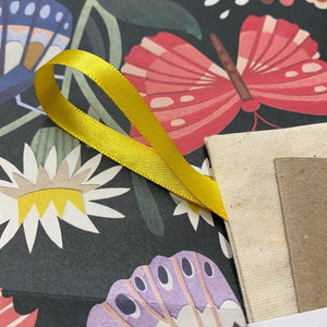 Each card comes with a sturdy fabric envelope, complete with satin ribbon to attach it to a gift.