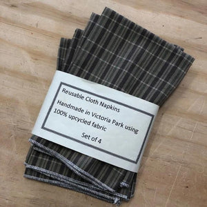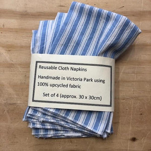 A set of 4 Reusable Table Napkins, hand made from upcycled cotton fabrics by the lovely PaulaW - one of our favourite local makers! Easily machine washed, making disposable paper napkins SO unnecessary...