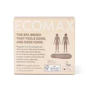 Crafted with 100% natural sisal and coconut fibre, the ECOMAX Spa Body Brush is an ethically made brush that is ideal for most skin types. This soft/medium strength brush, handmade with care, gently exfoliates and increases circulation, while also supporting detoxification through stimulating the lymphatic system.