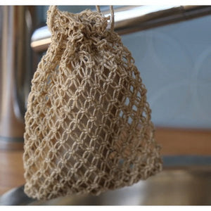 The Hemp Macrame Soap Pouch is an elegant way to save your soap, and the drawstring makes a handy loop so the soap is always in reach.