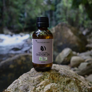 Vrindavan's 100% Organic Castor Oil is extracted from the castor bean seed, with the hull removed and carefully cold pressed to retain its pureness. With no added hexane, this colourless and odourless oil is perfect for all your skin and health requirements.