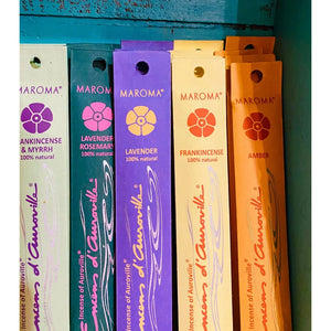 These 20cm Incense sticks are made in-house by Maroma which are rolled around bamboo sticks, with wood powder and gum resin. The finished sticks are then dipped into proprietary fragrances, which have been blended with pure essential oils.