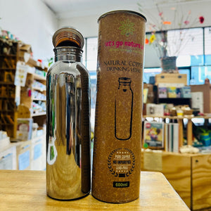 A beautiful and practical 600ml litre water bottle for hydration on the go with the natural health benefits of copper, from Goodly Gosh