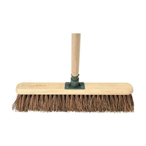 These garden brooms are designed for efficient sweeping in outdoor areas, using stiff bassine bristles crafted from natural palmyra palm fibres. Their dense bristles ensure superior performance in sweeping and cleaning tasks, while the FSC-certified hardwood head and handle offer durability with a protective wax finish. The fasteners are made from recycled and recyclable plastic, and the garden broom also features a leather hanging loop for convenient storage. Endorsed by the Royal Horticultural Society, this brush guarantees top-quality gardening results and comes with a two-year warranty.