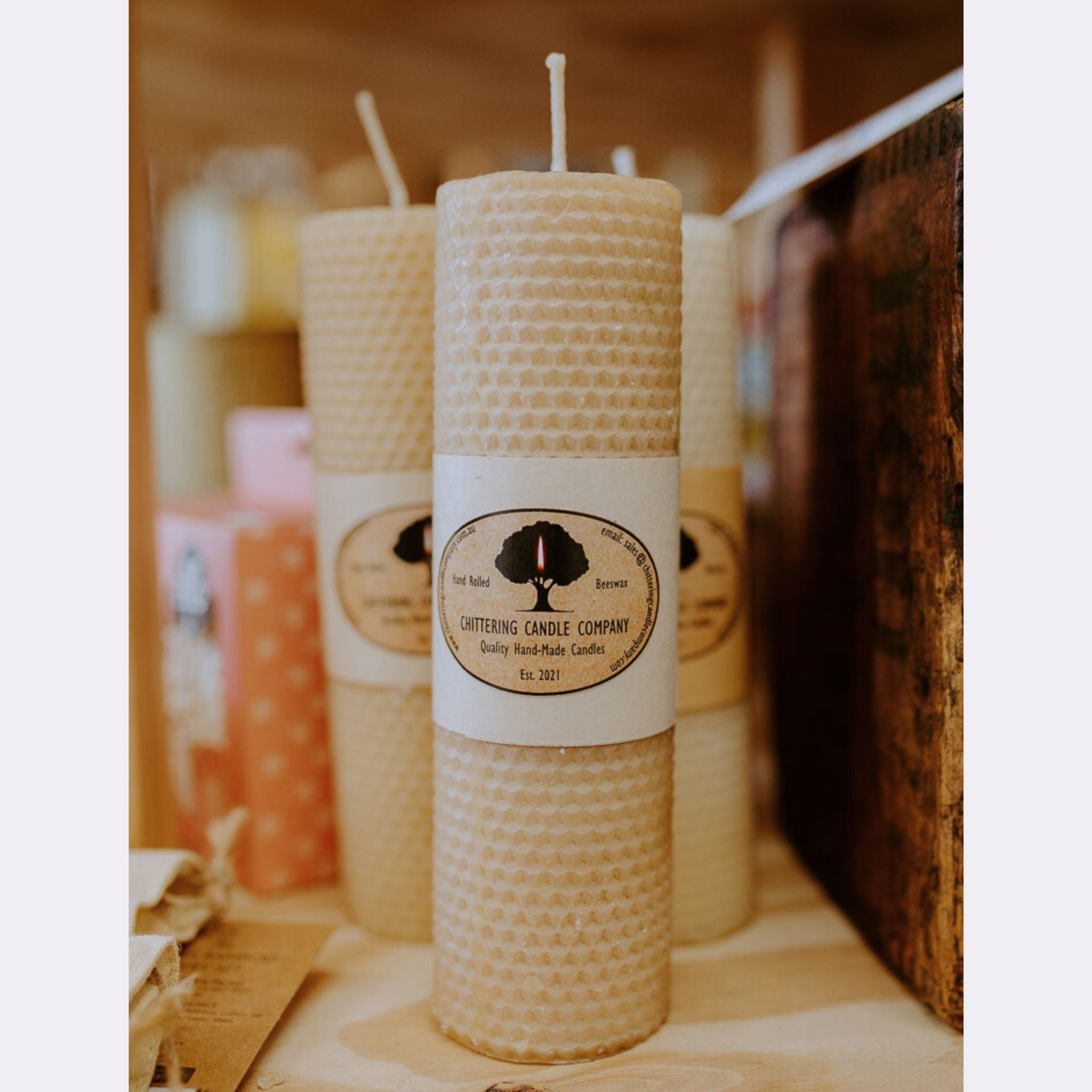 The 20cm Beeswax Pillar Candle is the biggest in the Chittering Candle Company's Collection. This candle has a burn time of over 40 hours and will create the perfect ambience to any room with its beautiful glow and natural honey scent. Beeswax Candles burn brightly without leaving a dripping, toxic mess.