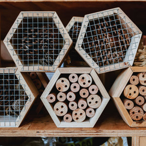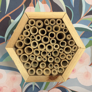These attractive hexagonal shaped insect hotels, cater for a range of native bees and beneficial insects while allowing us to observe these insects and monitor their activity in our gardens.