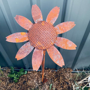 Decorative Rust Daisy Garden Stake: