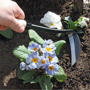 The sharp-edged Razor Hoe is drawn through the soil towards the gardener removing all weeds in its path and breaking up the surface of the soil to allow more penetration of nutrients and water.