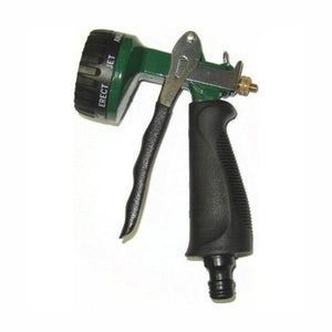 This hose connected watering spray gun or nozzle is hardier than it's plastic equivalent with multi-function spray patterns. It is easy and enjoyable to use.