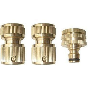 Includes a solid brass tap adaptor and two long lasting solid brass hose connectors. All the pieces you need to run a hose from your tap to your garden sprayer, nozzle or sprinkler.