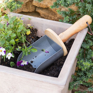 Crafted in high-carbon steel for durability and strength, this specialist container compost scoop has a tough powder coating for rust resistance. Like all the tools in the container gardening collection, this scoop comes with a ten-year guarantee.