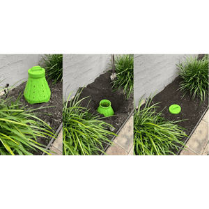 To install the recycled plastic Composting Unit simply dig a hole in your garden bed and bury the unit so that only the lid protrudes. When pet waste and Ensopet Mix are added the pet waste quickly breaks down, contributing to healthy soil and a gorgeous garden. The open base and perforated sides of the composting unit allow moisture and native earth worms into the system to further accelerate the breakdown process.