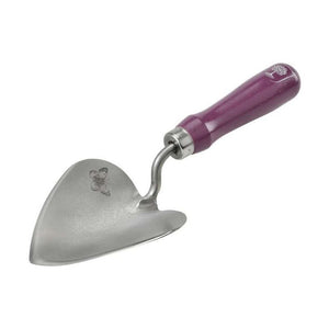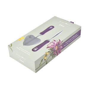 Both hand tools feature an FSC© hardwood handle, painted an elegant purple colour to match the other products in the Asteraceae Collection by Burgon and Ball. The trowel head is heart-shaped and etched with a butterfly illustration.