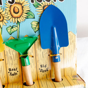 Real kids gardening tools, made for tiny hands. Inspire a love of gardening in the smaller people around you with this gorgeous set of sturdy, plastic-free childrens gardening tools. Also great for sandcastles and muddy games... Includes a shovel, rake and trowel.