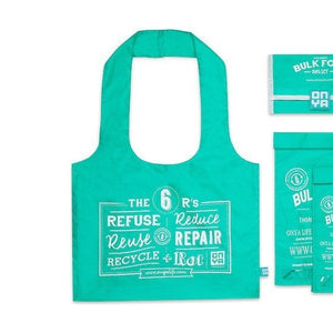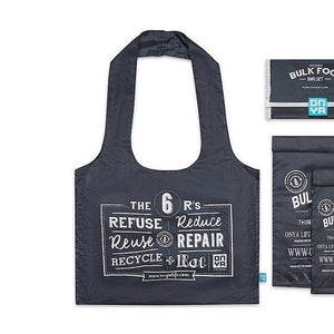 Our bulk food bag set contains a large, medium and small bulk food bag along with our specially designed bulk food shopping tote. They are all conveniently stored in our innovative bulk food carry case which comes with an attached carabiner that can be clipped on to your bag and belt so you always have your bags On Ya.