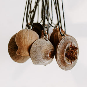 These are simple but truly beautiful necklaces, individually handmade from locally foraged Australian and other native seedpods by one of our favourite local makers.