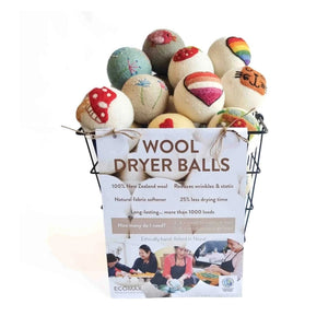 100% pure New Zealand wool dryer balls. These balls are ethically crafted and hand felted in Nepal featuring gorgeous and whimsical designs.Simply pop 3-6 balls in your dryer (depending on the size of your load) with your wet clothes and let them do their magic.