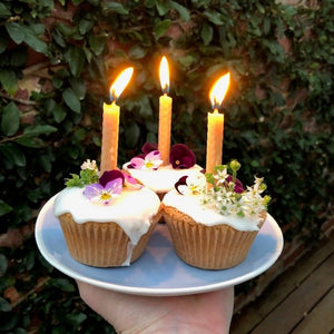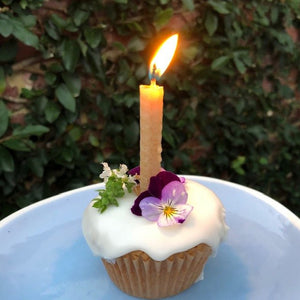 The last Birthday Candles you will ever have to buy! With a burn time of approximately 45 minutes, these natural Beeswax Candles will be a beautiful complement to every birthday cake for many celebrations to come. The Chittering Candle Company's Beeswax Candles burn brightly without leaving a dripping, toxic mess.