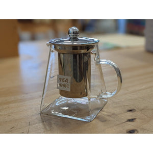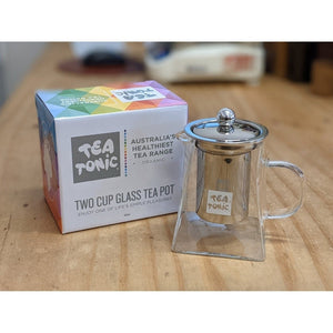 The tea pot has a two cup capacity (400mL) with fine stainless steel infuser basket. Perfect for use with our Roogenics teas and for any loose leaf tea infusions.