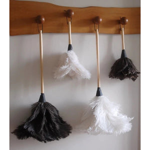 The perfect tool for quick and easy cleaning. Reusable and plastic-free, this ostrich feather duster cleans efficiently and effectively with static electricity, catching and trapping dust within the fine filaments on each feather.