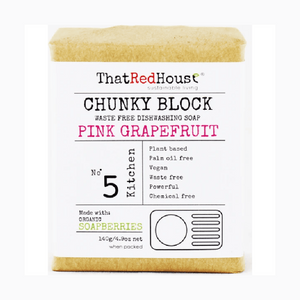 An all-natural replacement for conventional dishwashing detergents, laundry soaps, hand soaps and general household cleaners, the Chunky Block from That Red House comes in either fresh Grapefruit or Lemon Myrtle scents. Made from organic soap berries and essential oils.