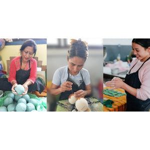 100% pure New Zealand wool dryer balls. These balls are ethically crafted and hand felted in Nepal featuring gorgeous and whimsical designs.Simply pop 3-6 balls in your dryer (depending on the size of your load) with your wet clothes and let them do their magic.