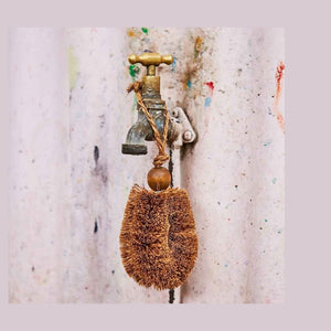 This brush is ethically made in Sri Lanka from renewable coconut fibre, sustainable plantation timber and coconut twine cord.