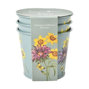 Made from galvanised steel with a durable powder coating, these herb pots will brighten up any windowsill. Perfect for planting kitchen herbs as well as flowers. The purple and yellow Asteraceae design pops from the soft sage background, featuring beautiful China aster and coreopsis flowers.