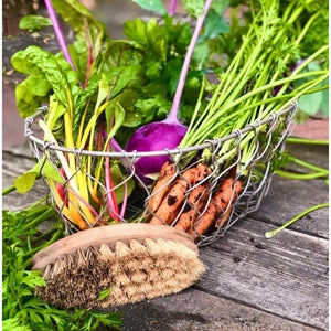 Another practical, durable, plastic-free kitchen tool from Redecker. This vegetable brush has firm bristles at one end and softer bristles at the other, for gentle and thorough cleaning of potatoes and vegetables of all types. Its wooden handle is the perfect size and shape to fit neatly in the hand.