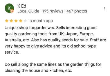 The delivery was much quicker than I expected. The staff are helpful & friendly, i will certainly be ordering more seeds in the future especially as they are open pollinsted, geurloom seeds. Well done!!