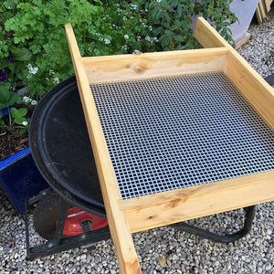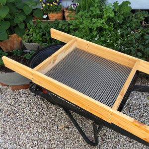 Our Wooden Compost Sieve is designed to fit over a standard-sized wheelbarrow. Simply load your compost onto the sieve and agitate it through the galvanized metal mesh. Larger chunks of material can be separated out and returned to the compost pile, leaving you with a barrowload of nutrient-rich compost for your garden.