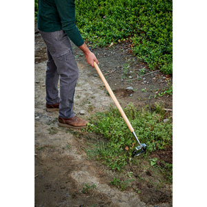 • 60" Long Northern Ash wood handle allows working in upright position, reduces back strain