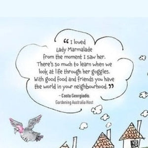I loved Lady Marmalade from the moment I saw her. There’s so much to learn when we look at life through her goggles. With good food and friends you have the world in your neighbourhood. Costa Georgiadis, Gardening Australia Host.