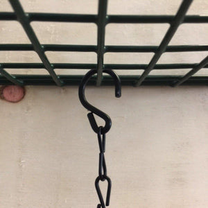 Made from metal and supplied with a hanging chain and hook for easy installation.