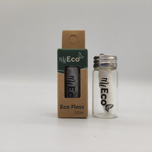 The jar contains 30m of a 100% compostable floss. Using about 50cm each time you floss your teeth, the package allows for approx. 60 uses. You can purchase MiEco bamboo tooth floss refills and pop them into the same glass jar dispenser.