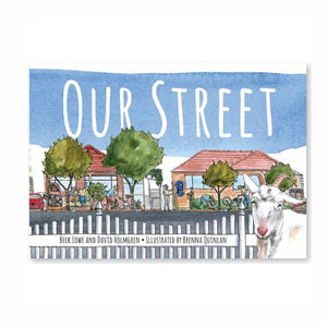 Our Street is a fully illustrated story book for upper primary school age children. It explores how suburban life changes between the 1950s and 2020s, and provides a positive vision of the future. It is a useful tool for parents and educators to help inspire children with positive solutions for sustainable and resilient living, whilst reflecting on Australian history.
