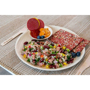 This Areca Palm Party Plate provides a non-toxic and eco-friendly alternative to disposable plastic tableware. Each piece is unique in texture, colour and pattern and can be composted at home to help reduce waste. Well suited to a variety of special events and occasions ranging from parties, functions and celebrations through to festivals or camping.