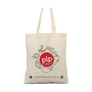 Practical calico tote bags made from 100% organic cotton, with unique artwork as featured on the front cover of various issues of PIP Permaculture magazine.