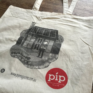 Practical calico tote bags made from 100% organic cotton, with unique artwork as featured on the front cover of various issues of PIP Permaculture magazine.