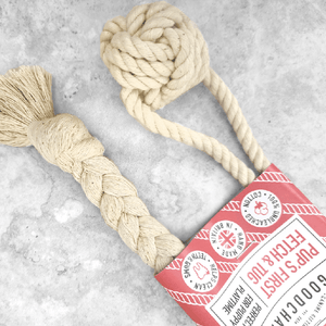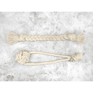 Great for all types of play, this perfect duo of plastic free puppy toys is great to introduce your pup to play time, while helping to keep their teeth and gums clean and healthy. Made from 100% unbleached three strand cotton, this product and it's packaging are completely home compostable without adding any more harmful microplastics into the environment. Great for your puppy and great for our planet!
